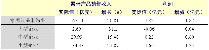 2006年1季度,水泥制造業(yè)中,大型、中型、小型企業(yè)的銷售收入增長速度都比上年同期有大幅提高。與行業(yè)平均增長率相比,中型企業(yè)增勢更為明顯,增長速度比全行業(yè)平均水平高出2.79個(gè)百分點(diǎn);實(shí)現(xiàn)利潤方面,大型企業(yè)仍然是虧損的,但是虧損額比上年同期有所減少,中型、小型企業(yè)則由上年同期的虧損轉(zhuǎn)變?yōu)橛?大型企業(yè)累計(jì)產(chǎn)品銷售收入為53.70億元,占全行業(yè)的9.46%,同比增長33.04%,增幅比上年同期上升了25.59個(gè)百分點(diǎn);實(shí)現(xiàn)利潤-0.26億元,比上年同期增加了0.21億元。 中型企業(yè)累計(jì)產(chǎn)品銷售收入為245.94億元,占全行業(yè)的43.31%,同比增長26.12%,增幅比上年同期上升了29.87個(gè)百分點(diǎn);實(shí)現(xiàn)利潤為4.25億元,占全行業(yè)的76.41%,同比增加了7.12億元。 小型企業(yè)累計(jì)產(chǎn)品銷售收入為268.28億元,占全行業(yè)的47.24%,同比增長36.53%,增幅比上年同期上升了24.31個(gè)百分點(diǎn);實(shí)現(xiàn)利潤為1.58億元,占全行業(yè)的28.35%,同比增加1.71億元。 1季度,水泥制品制造業(yè)中,大型、小型企業(yè)產(chǎn)品銷售同比增長高于行業(yè)平均增長率;小型企業(yè)實(shí)現(xiàn)利潤比上年同期大幅增長。