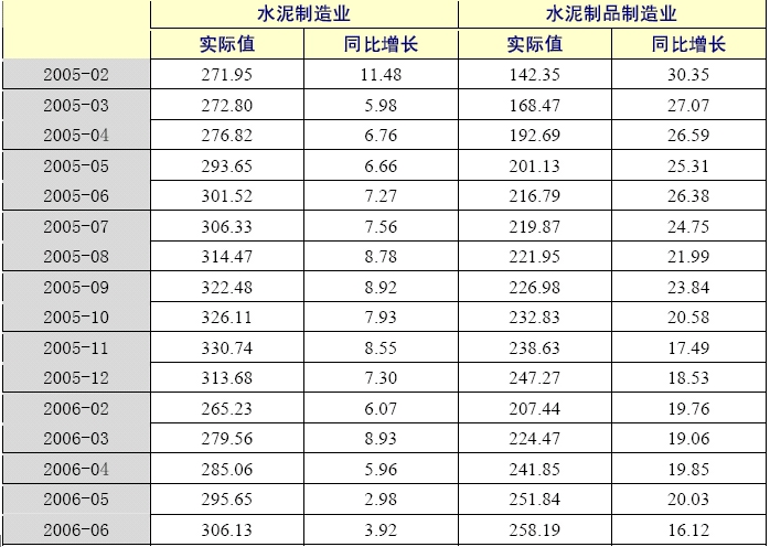 從資金使用情況看,2006年1-6月,水泥制造業(yè)的資金使用狀況總體要好于水泥制品制造業(yè),水泥制品制造業(yè)應(yīng)收帳款凈額為258.19億元,同比增長16.12%,增幅高于水泥制造業(yè)12個(gè)百分點(diǎn)。 2季度末,水泥制造業(yè)應(yīng)收帳款增幅比上年同期下降了3.35個(gè)百分點(diǎn),而水泥制品制造業(yè)應(yīng)收帳款增幅比上年同期下降了10.26個(gè)百分點(diǎn),說明水泥制品制造業(yè)的資金使用狀況較上年有明顯改善。
