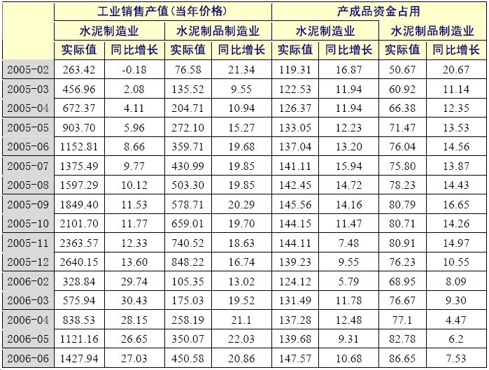 水泥行業(yè)工業(yè)銷售產(chǎn)值和產(chǎn)成品資金占用情況