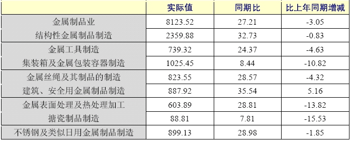 2006年,截止四季度末,金屬制品業(yè)實(shí)現(xiàn)產(chǎn)品銷(xiāo)售收入8123.5億元,同比增長(zhǎng)27.21%,增幅比上年同期回落了3.05個(gè)百分點(diǎn),比同期工業(yè)總產(chǎn)值增速低1.4個(gè)百分點(diǎn),市場(chǎng)需求的約束性明顯增強(qiáng)。
