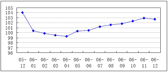 2006年四季度,金屬制品制造業(yè)的出廠價格指數(shù)出現(xiàn)平穩(wěn)上漲。其中,10、11、12月份,金屬制品制造業(yè)工業(yè)品出廠價格指數(shù)分別為102.3、102.9、102.7。從趨勢上看,四季度是金屬制品出廠價格反彈跡象明顯,價格拐點(diǎn)開始出現(xiàn)。