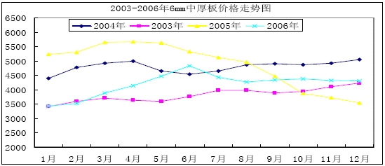2003-2006年6mm中厚板價格走勢圖