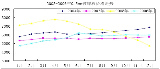 2003-2006年0.5mm鍍鋅版價(jià)格走勢(shì)