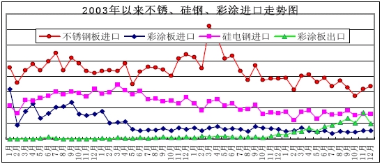 2003-2006年不銹、硅鋼、彩涂進口走勢