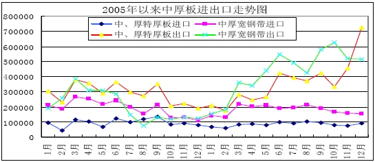2005-2006年中厚板進(jìn)出口走勢(shì)