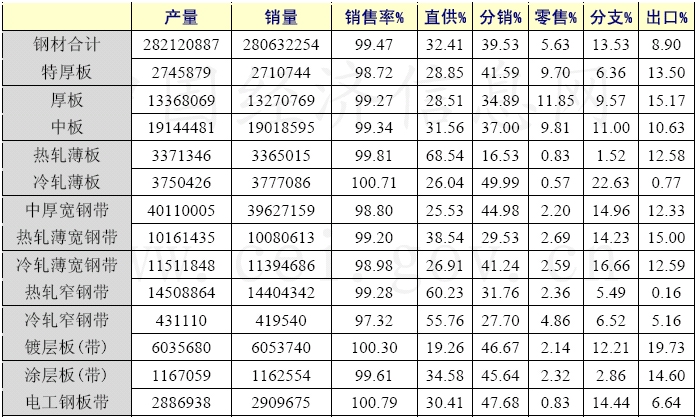 在重點(diǎn)統(tǒng)計(jì)單位中屬于企業(yè)直供銷售占32.41%,比例有所提高,通過(guò)流通環(huán)節(jié)銷售的占45.16%,分支機(jī)構(gòu)銷售占13.53%,出口占8.90%,出口比例略有提高,重點(diǎn)統(tǒng)計(jì)單位的鋼材銷售方式表明,目前全國(guó)鋼鐵企業(yè)的銷售方式主要是通過(guò)流通環(huán)節(jié)銷售鋼材,通過(guò)企業(yè)直供和分支機(jī)構(gòu)銷售鋼材的比重不大。