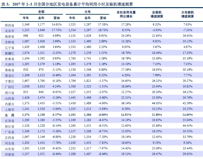 (1~3 月利用小時(shí)同比下降34 小時(shí))。分省份來(lái)看,華北、東北區(qū)域火電利用