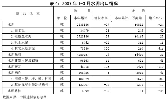 鑒于美國經(jīng)濟增速放緩、人民幣升值、國內(nèi)水泥價格上漲、國外大量水泥項目投產(chǎn)等因素的影響,預計2007年我國水泥和熟料出口很可能出現(xiàn)大幅下降。