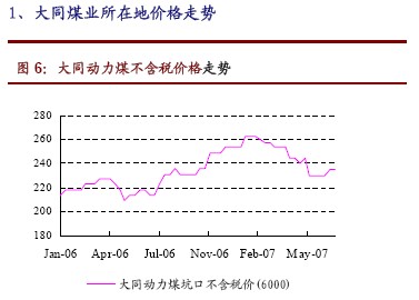 07上半年十大煤炭上市公司所在地煤價走勢(1):大同煤業(yè) 西山煤電