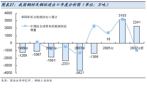 如果單看當年的鋼材及鋼坯凈出口量,2006 年的凈出口3193 萬噸創(chuàng)歷史新高。而如果以前一年為參照,看增量,也就是中國給全球帶來的粗鋼供給增量來看,2004-2006 年中國每年給世界增加了2255、1384、3193 萬噸的增量,而2007 年的供給增量為-952 萬噸。顯然不是我們所想象的給全球的供給帶來巨大的沖擊,以此角度分析,2007 年我們給全球的鋼鐵市場沖擊并不嚴重。