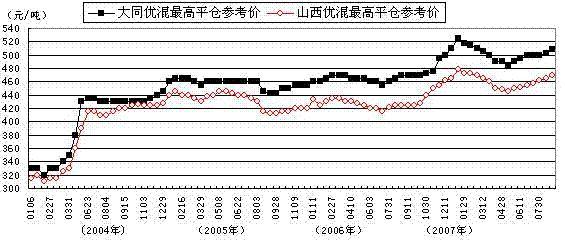 2004~2007年秦皇島煤炭價(jià)格變化表