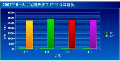 2007年5月~8月我國(guó)焦炭生產(chǎn)與出口情況