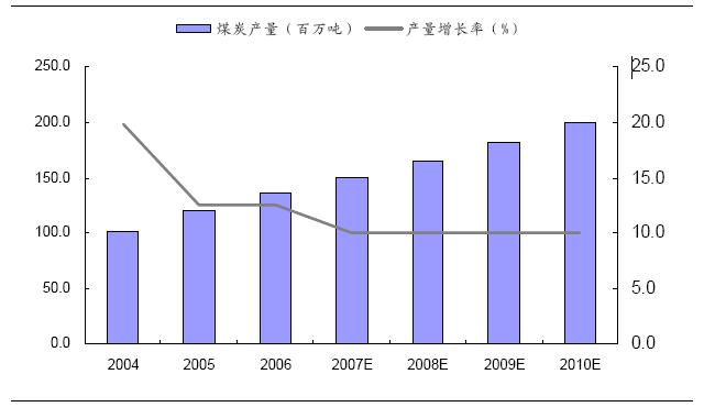 年-2010 年累計三年的商品煤產(chǎn)量將達(dá)到540 百萬噸。如果按此計劃順利推進(jìn),