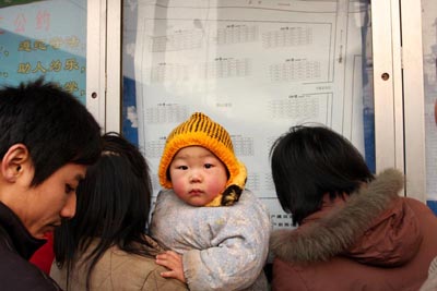 12月16日下午,在安徽淮北臨渙礦工人村集資建房剖面圖前,一名職工家屬抱著小孩認(rèn)真地挑選著適合自已居住的房型。臨渙礦為解決部分無(wú)房戶職工的住房困難,在工人村煤氣站大院內(nèi)集資建造住宅樓440套,并由“職工代表聯(lián)席會(huì)”通過(guò)了集資建房分配方案,目前,評(píng)分工作已全部結(jié)束,住房分配正在進(jìn)行中。