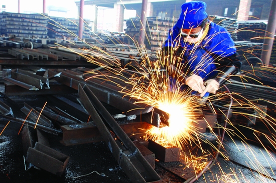 12月27日,安徽淮北市朱莊煤礦,一名工人正在焊接從百米井下回收上來(lái)的鋼材。2007年以來(lái),朱莊煤礦積極開(kāi)展回收復(fù)用、修舊利廢工作,組織礦工從百米井下回收廢舊的鋼材、設(shè)備等材料,通過(guò)維修加工后重新應(yīng)用于生產(chǎn)中去,全年累計(jì)完成產(chǎn)值400多萬(wàn)元。(謝正義)