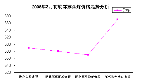 2008年3月初期(三月第一周),安徽地區(qū)需求平穩(wěn),資源供應(yīng)緩和,用煤企業(yè)庫(kù)存量處于飽和狀態(tài),煤炭?jī)r(jià)格相對(duì)平穩(wěn),5500大卡煙煤價(jià)格為590元/噸(車板含稅)。