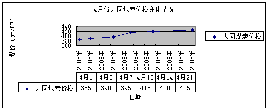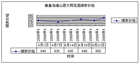 三、港口來源地煤炭市場(chǎng)價(jià)格堅(jiān)挺,后市價(jià)格看漲。秦皇島港口地區(qū)煤炭主要來源地為我國(guó)主要產(chǎn)煤地區(qū)的山西大同以及內(nèi)蒙地區(qū),據(jù)煤炭網(wǎng)煤炭產(chǎn)業(yè)信息中心有關(guān)調(diào)查統(tǒng)計(jì)顯示,進(jìn)入4月份以來,這些主要產(chǎn)煤地區(qū)煤炭市場(chǎng)價(jià)格就居高不下,煤炭坑口價(jià)格不斷小幅攀升,煤炭?jī)r(jià)格在高位保持總體平穩(wěn)運(yùn)行的態(tài)勢(shì),如下圖所示: