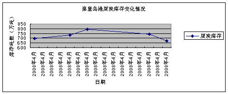 二、秦皇島港煤炭庫(kù)存持續(xù)高位,但近期已有回落跡象。由于年初時(shí)節(jié)搶運(yùn)電煤保電力生產(chǎn)供應(yīng)工作的緊張有效運(yùn)作,秦皇島作為我國(guó)北方地區(qū)最大的煤炭輸出港口,其下水的煤炭主要是電煤,首當(dāng)其沖成為國(guó)內(nèi)電煤的集散地,隨著南方地區(qū)交通運(yùn)輸條件的改善以及天氣轉(zhuǎn)暖,市場(chǎng)對(duì)煤炭用量的下調(diào),秦皇島港口地區(qū)煤炭庫(kù)存居高不下,煤炭庫(kù)存一度沖高到近800萬噸的歷史高位,近期隨著南方地區(qū)陰雨天氣的持續(xù),以及市場(chǎng)對(duì)煤炭需求的持續(xù)旺盛,加上秦皇島港務(wù)局加大了煤炭疏港的力度,煤炭庫(kù)存有所下降,具體看下圖所示:.
