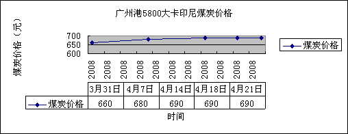一、港口進口優(yōu)質(zhì)煤炭價格總體穩(wěn)定,后市價格穩(wěn)中看漲。4月初廣州港5800大卡印尼平倉價格在660元/噸左右,月初有20-30元的漲幅,后期總體價格穩(wěn)定,具體情況看下表圖示:
