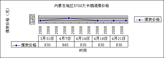 三、港口來源地煤炭市場價格堅挺,后市隨著國際煤炭價格談判結(jié)束,當前的煤炭高位運行有望的到支撐,并進一步看漲。廣州港口地區(qū)煤炭主要來源地為越南與印尼以及我國主要產(chǎn)煤地區(qū)的山西大同、內(nèi)蒙地區(qū)及陜西地區(qū)。據(jù)煤炭網(wǎng)煤炭產(chǎn)業(yè)信息中心有關(guān)調(diào)查統(tǒng)計顯示,進入4月份以來,這些主要產(chǎn)煤地區(qū)煤炭市場價格就居高不下,以內(nèi)蒙古地區(qū)的煤炭價格為例,煤炭價格在高位保持總體平穩(wěn)運行的態(tài)勢,如下圖所示: