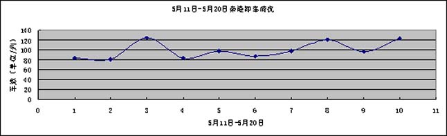 5月11日-5月20日這段時(shí)間內(nèi),接卸最多的一天為125列,最少的一天為81列。其中5月13日接卸車數(shù)最多為125列;5月12日接卸車數(shù)最少為81列;5月11日、14日接卸車數(shù)在83列左右;5月15日、17日、19日接卸車數(shù)在97列左右,5月16日接卸車數(shù)為87列;5月18日、20日接卸車數(shù)在122列左右。本月中旬接卸車數(shù)比本月上旬接卸車數(shù)量有所增多,煤炭卸車數(shù)量的增多并未緩減秦皇島煤炭市場(chǎng)供應(yīng)緊張,仍不能滿足市場(chǎng)的需求。