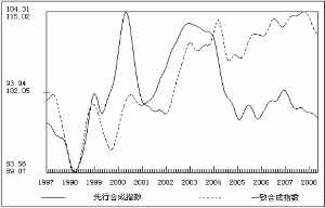 圖1 1997年以來(lái)先行與一致合成指數(shù)趨勢(shì)變動(dòng)圖