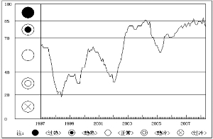 圖2 綜合警情指標(biāo)冷熱狀態(tài)顯示圖 圖3 綜合警情指數(shù)趨勢(shì)變動(dòng)圖