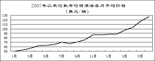 國際原油價格屢創(chuàng)歷史新高。紐約WTI原油價格先后突破110美元/桶、120美元/桶、130美元/桶、140美元/桶。6月份,布倫特原油平均價格132美元/桶,同比提高61.9美元/桶,漲幅為88.2%。由于成品油價格倒掛,煉油企業(yè)虧損嚴重,地方煉廠停產(chǎn)、減產(chǎn)面擴大,部分地區(qū)成品油市場供應較為緊張。為此,國家自6月20日起將汽油、柴油價格每噸提高1000元。前五個月,石化行業(yè)實現(xiàn)利潤2237億元,同比下降0.4%,去年同期為增長27.1%。其中,煉油行業(yè)由去年同期凈盈利310億元轉(zhuǎn)為凈虧損568億元。
