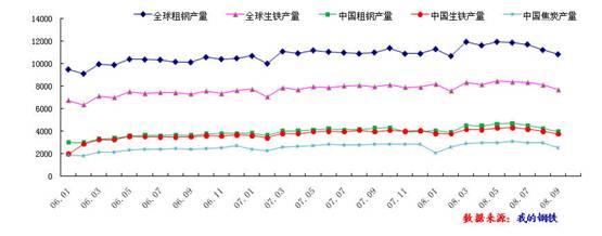 一、全球鋼市疲軟粗鋼、生鐵產(chǎn)量回落