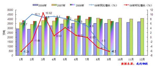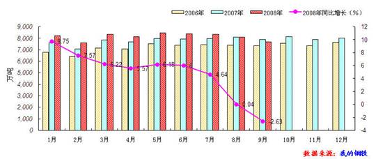 據(jù)國(guó)家統(tǒng)計(jì)局最新生產(chǎn)統(tǒng)計(jì)數(shù)據(jù)顯示:2008年9月生鐵總產(chǎn)量較8月份相比有所減少,日均產(chǎn)量也再度下降。2008年9月份,全國(guó)生鐵產(chǎn)量為3754.95萬(wàn)噸,較8月份的4004.54萬(wàn)噸下降了249.59萬(wàn)噸,本月較去年同期減少了245.05萬(wàn)噸,同比下降了6.1%;按照日均產(chǎn)量來(lái)算,9月份為125.17萬(wàn)噸,較8月份的129.18萬(wàn)噸下降了4.01萬(wàn)噸,連續(xù)三個(gè)月回落。2008年1-9月全國(guó)累計(jì)生產(chǎn)生鐵36673.52萬(wàn)噸,較去年同期相比增長(zhǎng)5.1%。