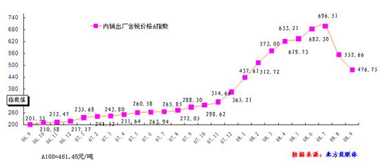 圖9:2006-2008年焦炭出口價(jià)格走勢(shì)圖