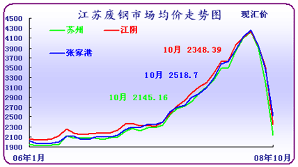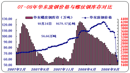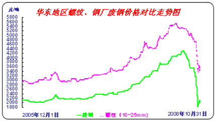10月份國內(nèi)廢鋼市場如筆者預(yù)期,大幅度走低,國內(nèi)四大區(qū)域(華東、華中、華北、東北)廢鋼市場均價(jià)從月初的3350元/噸下滑到月底的1800元/噸,下滑幅度達(dá)到46.3%,成交量也大幅度縮水。寶鋼、沙鋼、鞍鋼等各地區(qū)代表性鋼廠對11月份廢鋼采購計(jì)劃非限則停,庫存用量基本超過三個(gè)月。