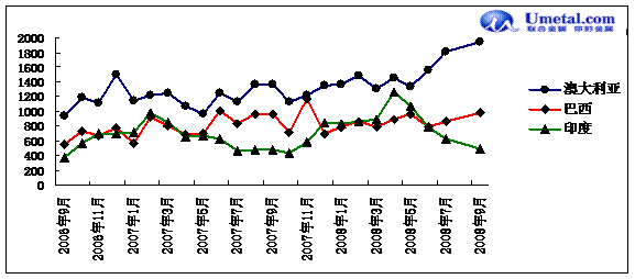 2008年9月進口鐵礦石分國別統(tǒng)計: