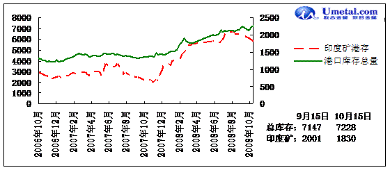 從中國鐵礦石供需統(tǒng)計表可發(fā)現(xiàn),從08年4月開始,進口與國產(chǎn)鐵礦石合計供應(yīng)量一直大于需求,數(shù)字顯示1-9月中國鐵礦石供應(yīng)累計超過需求2142萬噸,如果考慮沒有統(tǒng)計的國內(nèi)地方小礦山產(chǎn)量,情況更為嚴重。