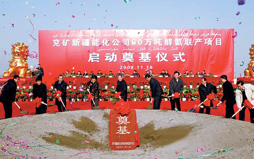 11月18日,總投資40.97億元的兗礦新疆能化公司60萬噸醇氨聯(lián)產(chǎn)項(xiàng)目在甘泉堡工業(yè)區(qū)奠基。項(xiàng)目建設(shè)期為32個月,建成后將填補(bǔ)新疆沒有以煤為原料生產(chǎn)合成氨、尿素、甲醇大型企業(yè)的空白。