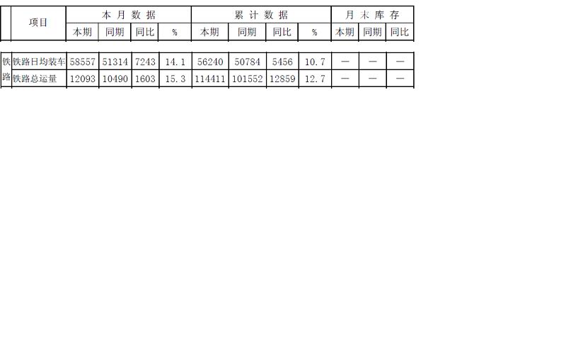 當(dāng)前位置:首頁(yè) -> 煤炭運(yùn)輸 -> 運(yùn)輸統(tǒng)計(jì) -> 鐵路運(yùn)輸