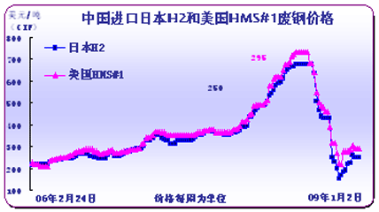 國(guó)際廢鋼價(jià)格全年跌幅超過(guò)國(guó)內(nèi)市場(chǎng),日本H2號(hào)廢鋼從年初的390美元一路漲跌到年底的250美元,年底較年初跌幅36%,而國(guó)內(nèi)年底的2550元/噸比年初的3150元/噸跌19%,目前國(guó)內(nèi)廠商對(duì)國(guó)際資源仍比較青睞。而對(duì)于目前國(guó)內(nèi)廢鋼的可供應(yīng)量與需求量,即使09年國(guó)內(nèi)鋼材市場(chǎng)沒(méi)有明顯回暖,廢鋼資源仍將保持供不應(yīng)求局面,而對(duì)于中國(guó)廢鋼的主要進(jìn)口國(guó),在經(jīng)濟(jì)危機(jī)態(tài)勢(shì)下,在本地銷(xiāo)售資源很難達(dá)到理想盈利水平,出口到中國(guó)也是09年國(guó)際廢鋼經(jīng)銷(xiāo)商的首選路徑。預(yù)計(jì)09年我國(guó)進(jìn)口廢鋼數(shù)量會(huì)高于08年。