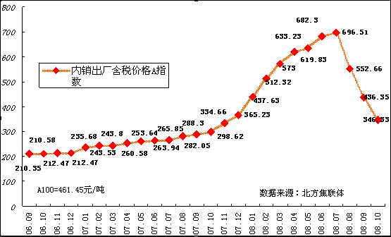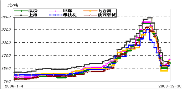 『東北地區(qū)』東北地區(qū)焦炭?jī)r(jià)格一直以來(lái)低于華北地區(qū),但是隨著黑龍江龍煤集團(tuán)連續(xù)上調(diào)其焦煤出廠價(jià)格后,東北地區(qū)焦炭?jī)r(jià)格也相應(yīng)水漲船高。東北做為全國(guó)的老工業(yè)基地?fù)碛邢蟀氨具@樣的鋼鐵龍頭企業(yè),而焦炭?jī)r(jià)格的走高,使得東北地區(qū)鋼廠成本壓力不斷增大。到2008年年中,東北地區(qū)中小鋼廠因?yàn)樵剂系拇蠓吒唛_始出現(xiàn)大面積的流動(dòng)資金緊張、銀行信貸困難的情況,而東北地區(qū)焦化企業(yè)同樣面臨著煤價(jià)高企、采購(gòu)困難等問題。奧運(yùn)會(huì)結(jié)束后,東北地區(qū)一樣未能避免需求大幅萎縮的命運(yùn),東北地區(qū)焦炭市場(chǎng)似乎表現(xiàn)的更加敏銳,10月中旬,黑龍江地區(qū)二級(jí)焦炭出廠價(jià)格就已經(jīng)回落至1100-1200元/噸的水平。進(jìn)入11月底,隨著全國(guó)鋼鐵生產(chǎn)的逐漸恢復(fù),東北地區(qū)焦炭行情也開始穩(wěn)步回升。截止到12月底,東北地區(qū)大部分焦化企業(yè)前期的焦炭庫(kù)存均已出清,焦煤采購(gòu)也出現(xiàn)一定程度的緊張。臨近春節(jié),當(dāng)?shù)卣哟罅藢?duì)地方煤礦的安全整治力度,焦炭廠在年前會(huì)適當(dāng)儲(chǔ)備少量用于節(jié)前生產(chǎn)的原料焦煤,而鋼廠的詢價(jià)與增加采購(gòu)都促使東北地區(qū)焦炭?jī)r(jià)格開始小幅上漲。