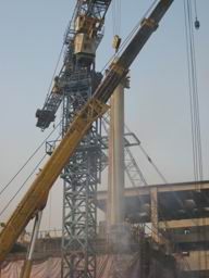 2009年1月16日上午,河北省鹿泉市金隅鼎鑫水泥有限公司5000t/d熟料生產(chǎn)線(擴(kuò)建工程)窯尾框架安裝工程順利實現(xiàn)吊裝第一鉤,由此拉開了冀中項目機(jī)電設(shè)備全面安裝的序幕。