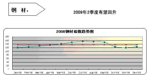 中國(guó)鋼鐵的價(jià)格指數(shù)如上圖,奧運(yùn)前持續(xù)上漲,奧運(yùn)過(guò)后又雪崩式下跌,同樣的迅速,同樣的非理性。至12月由于政府政策扶持,價(jià)格指數(shù)又呈小幅度回升。鐵礦石談判期間,其價(jià)格漲幅是鋼鐵價(jià)格上漲的主要原因。從4月開(kāi)始,由于奧運(yùn)眾多鋼鐵消費(fèi)行業(yè)迫于環(huán)保壓力停產(chǎn),后又遇見(jiàn)全球金融風(fēng)暴,使得鋼鐵需求減少,鐵礦石明顯供大于求。這些都使得鋼材價(jià)格跳水。不過(guò)近期,寶鋼上調(diào)了2009年2月的鋼價(jià)。可以預(yù)計(jì)鋼材2009年一季度低價(jià)位震蕩運(yùn)行,二季度回升至合理價(jià)位運(yùn)行,下半年市場(chǎng)形勢(shì)總體要好于上半年。