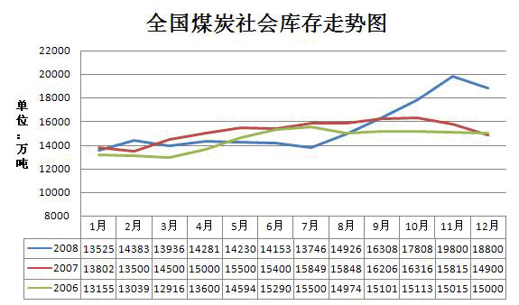 2008年全國煤炭社會庫存走勢統(tǒng)計