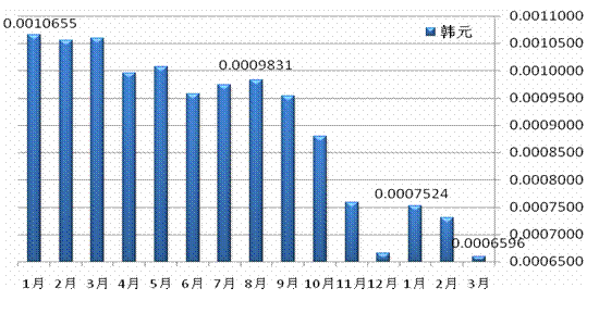(1)韓元。進入2008年以后,韓元對美元開始大幅貶值,至2009年3月,1韓元兌美元由2008年1月的0.0010655,跌至今年3月份的0.0006596,韓元累計貶值了38.09%。不僅是韓國,越南等東南亞國家貨幣也大幅貶值,抬高了中國鋼材向這些地區(qū)出口的成本。