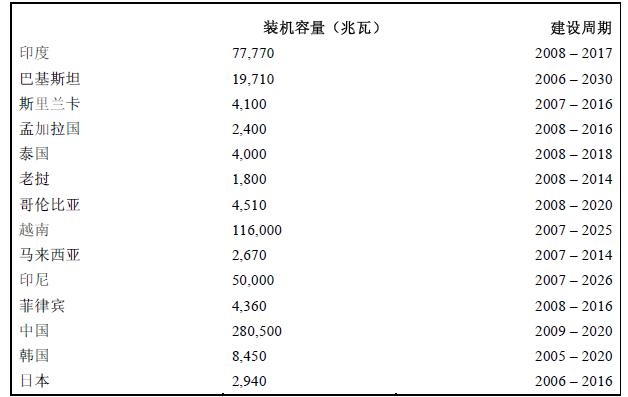 亞洲燃煤電站計(jì)劃增量