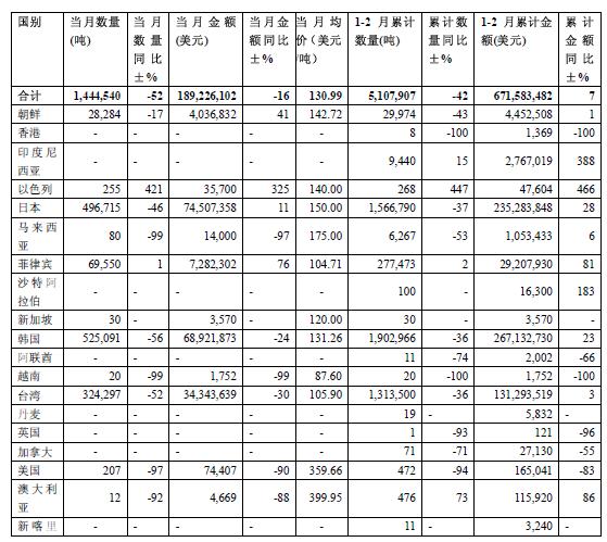 2009年2月我國煤炭出口分國別統(tǒng)計