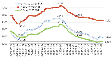 △2.75mmSS400熱卷1月月內(nèi)漲幅3.37%,2月下跌11.09%,3月跌幅減小為4.93%,4月跌幅進一步減弱為2.11%。