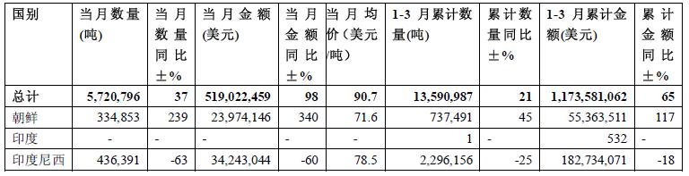 2009年3月我國煤炭進(jìn)口分國別統(tǒng)計(jì)