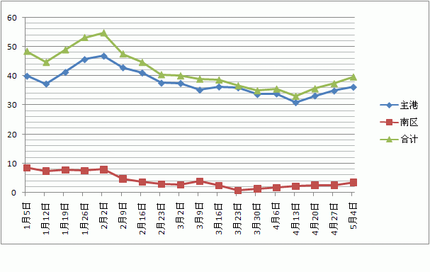 截止至2009年5月6日,萬寨港庫存40.5萬噸,其中主港區(qū)36.5萬噸,南區(qū)4萬噸。