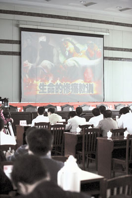 按照國(guó)務(wù)院安委辦《關(guān)于開展“安全生產(chǎn)宣傳教育、安全生產(chǎn)執(zhí)法、安全生產(chǎn)治理”三項(xiàng)行動(dòng)》的通知要求,省政府決定在全省開展煤礦重特大事故案例警示教育活動(dòng)。經(jīng)省煤炭工業(yè)局、省煤監(jiān)局近3個(gè)月的精心準(zhǔn)備,選擇了寧武縣賈家堡煤礦接替井“7·2”特大瓦斯爆炸事故、朔州市平魯區(qū)白堂鄉(xiāng)細(xì)水煤礦 “3·19”特大瓦斯爆炸事故等近年來(lái)15起事故案例,在全省進(jìn)行巡講。