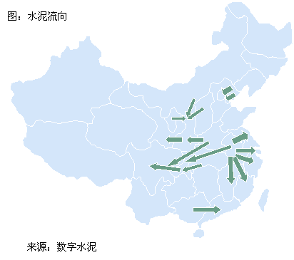 從各地調(diào)研了解的資料顯示,目前全國市場(chǎng)水泥的流向大致是: