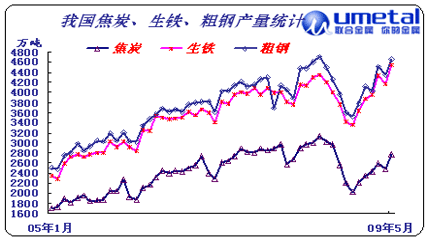 一、五月我國(guó)焦炭、生鐵、粗鋼產(chǎn)量全面回暖